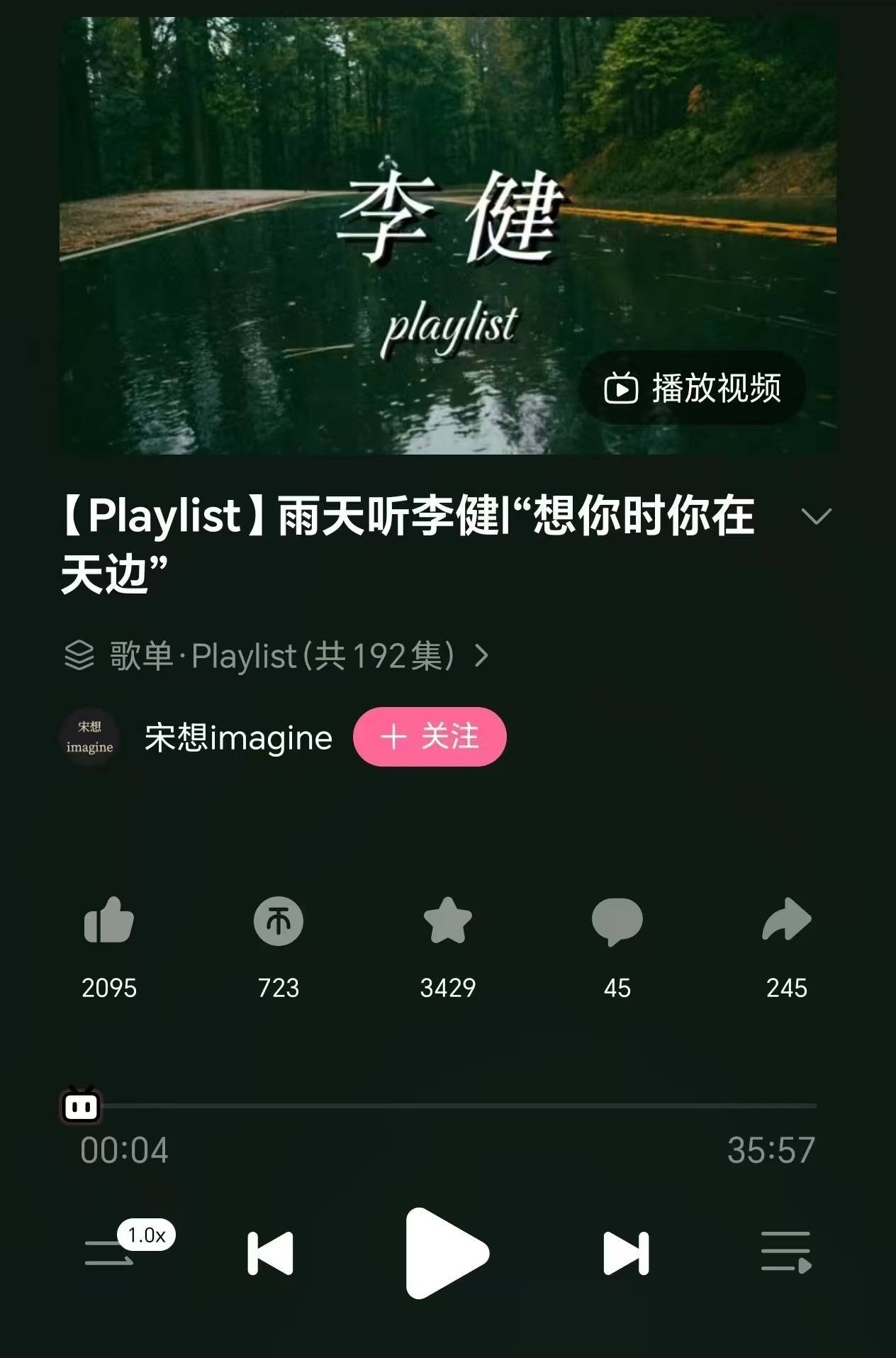 我用B站收听音频的习惯已坚持一年多,起因是准备法考时在早班地铁上偶然看到“听视频”这个选项。也是因为考试,下班后学习到晚间十点钟的疲惫夏夜,偶然在B站被推送“雨天听李健:想你时你在天边”的playlist,从此一发不可收拾,习惯于步行在天桥上听各种playlist,仿佛感受到微雨的潮湿,觉察到难得的平静。再后面习惯于收听sj的新歌、raye的演唱会、降调性转的《风月》。目前,我所有的音乐收听行为都来自B站。